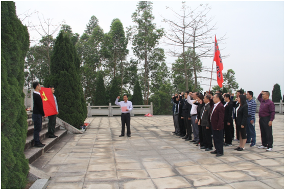 4月3日,揭陽農墾組織機關全體黨員到揭陽市揭東區(qū)汾水戰(zhàn)役革命紀念基地舉行緬懷革命先烈、重溫入黨誓詞活動。